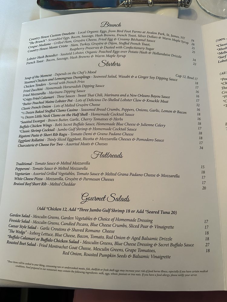 Country House is a classy and romantic establishment offering a variety of cuisines, including steakhouses, Italian, American, and seafood. Located in Stony Brook, NY, the restaurant provides a range of amenities such as outdoor seating, catering services, and a full bar. The menu features appetizers like Belgium endive salad and rigatoni pasta, along with entrees such as roasted chicken breast and pan-roasted salmon. The off-the-grill options include certified Black Angus filet mignon and Kansas City strip steak. Customers have praised the delicious food, impeccable service, and festive holiday decorations. Reviews highlight the friendly staff, delicious dishes, and warm ambiance, making Country House a must-visit dining destination during the holidays. Overall, Country House offers a delightful dining experience with a diverse menu and exceptional service.